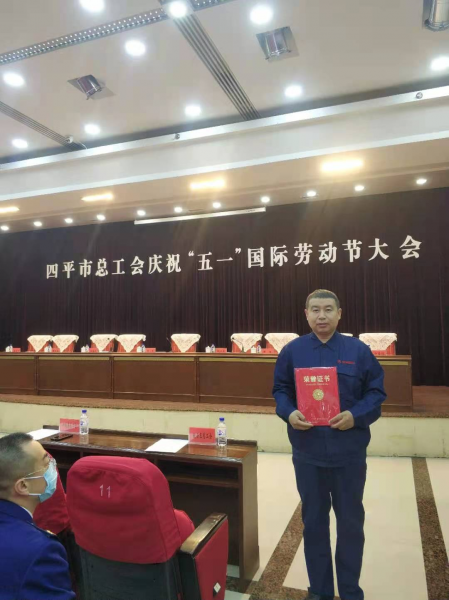 2021年4月27日,四平市總工會召開了慶祝“五一”國際勞動節(jié)大會,對2021年選樹的25個市“五一勞動獎狀”獲得單位、64名“五一勞動獎章”獲得者和19 個“工人先鋒號”獲得單位進行了表彰。我公司設備處檢修作業(yè)區(qū)焊鉗組組長劉軍同志被授予2021年四平市五一勞動獎章。